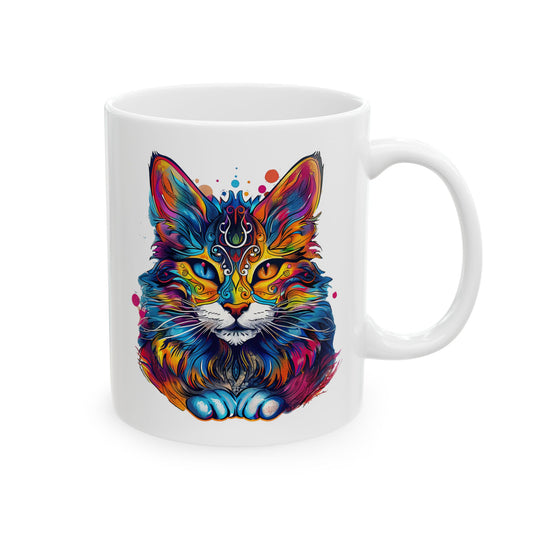 Princess, Maine Coon Cat Lover's Rainbow Retro Gift Mug, Printed Art, Christmas Ceramic Mug 11oz Colorful Upbeat Vibe