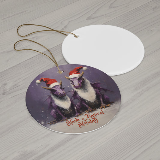 Have a Magical Holiday - Purple Dragons - Christmas Dragons Ceramic Christmas Ornament - Seasons Dragons Magical Dragon Dinosaur Kids Ornament Gift