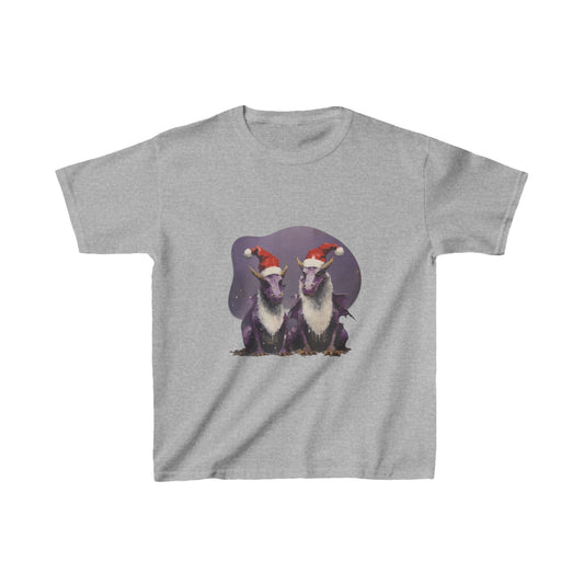 Christmas Dragons, Unisex, Kids Heavy Cotton™ Tee, T-Shirt, Boys Girls Teeshirt, Purple Dragon With Santa Hat- Multi color tee