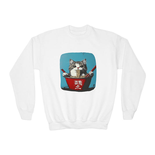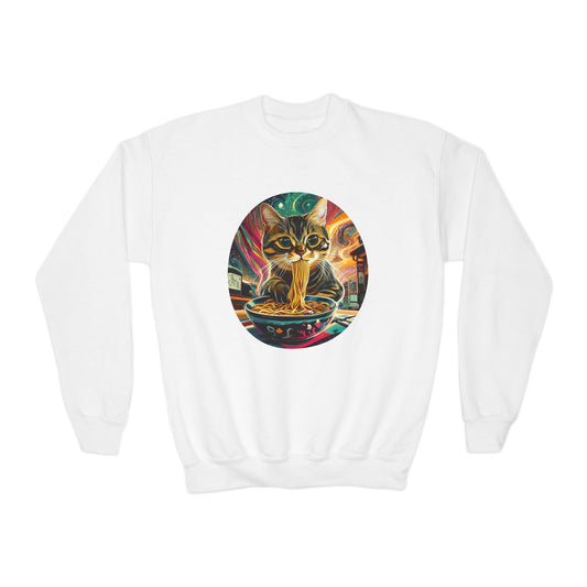 Ramen Bowl Cats for Kids Sweatshirt - Hungry Noodle Kitty Cat Youth Crewneck Sweatshirt -Christmas Cat Gift