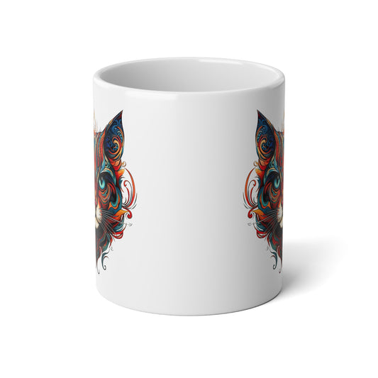 Cat Tribal Style Art Mug, Cat Lovers Christmas Cat Gift, Tribal Cat Gift Mug, Jumbo 20 oz Mug XL Size Mug