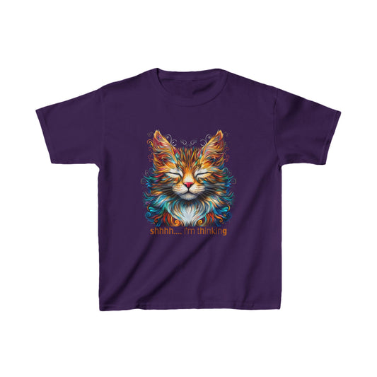 Kids - Thinking Cat Graphic Tee - Vibrant Cute Cat Design for Young Adventurers