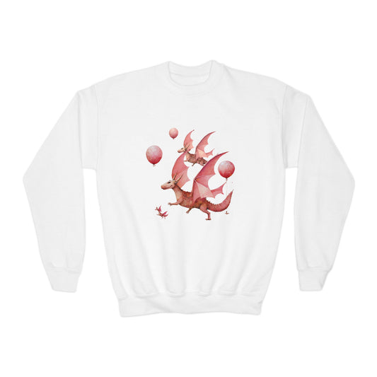 Pink Flying Dragon Sweatshirt, Dragon Lovers, Kids, Girls, Boys Youth Crewneck Sweatshirt Magic Birthday