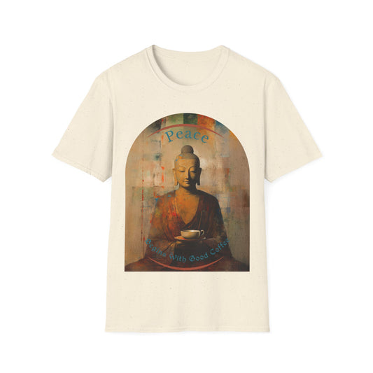 Coffee Lover Peace Gift, Peace Begins with Good Coffee Buda Buddha Budda Unisex Jersey Short Sleeve Tee Shirt, Softstyle T-Shirt Men Woman