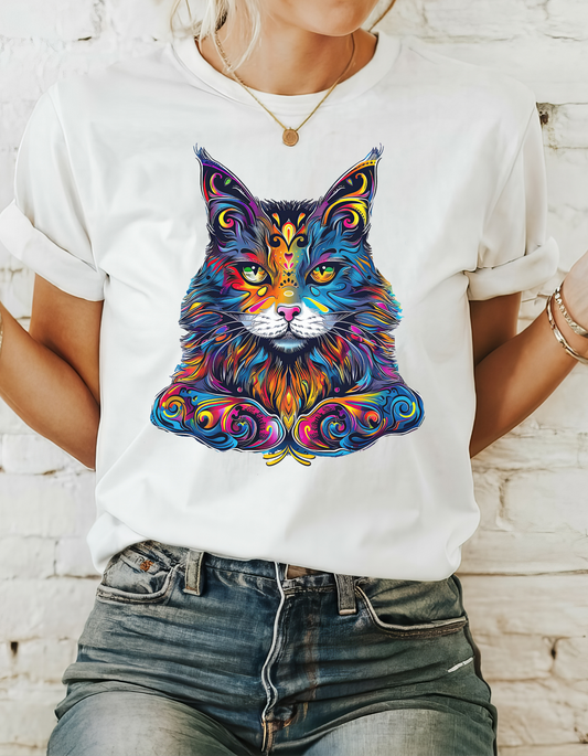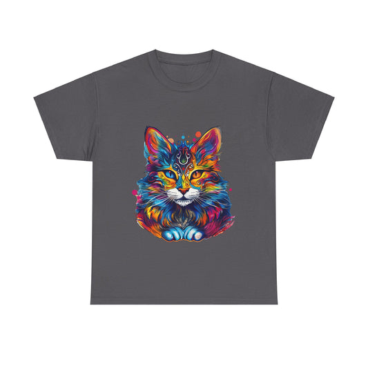 Chill Vibe Jewel Tone Cat Graphic Tee - Cat Lover TeeShirt - T-shirt - Cat Gift Unisex Heavy Cotton Tee T-Shirt