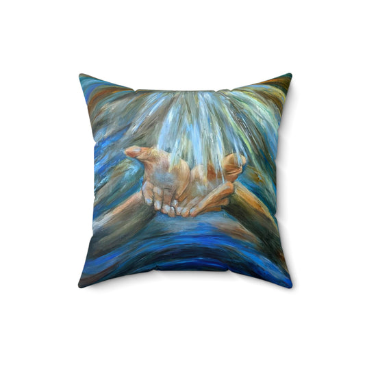 Reiki Hands of Grace, Hands of Light, Creation, Spiritual, Meditation, Yoga Spun Polyester Square Pillow Energy Work