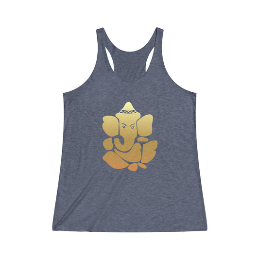Golden Ganesha Tee, Ganesh, Remover of Obstacles, Women's Yoga Athletic Racerback Tank Top Shirt