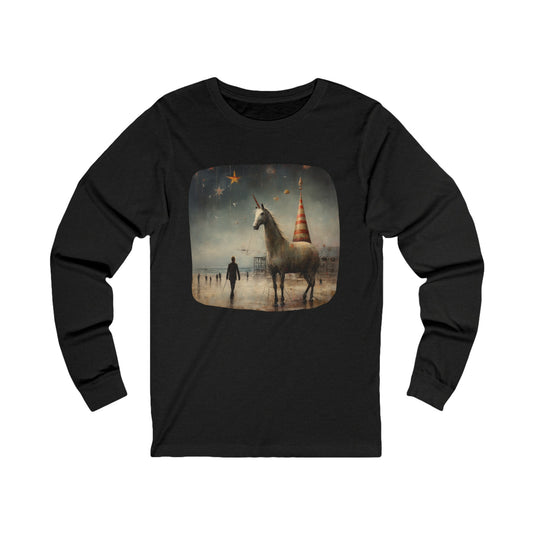 Whimsical Unicorn Shirt, White Unicorn Long Sleeve Shirt Unicorn on a Beach Gift Unisex Jersey Long Sleeve Tee Shirt, T-Shirt