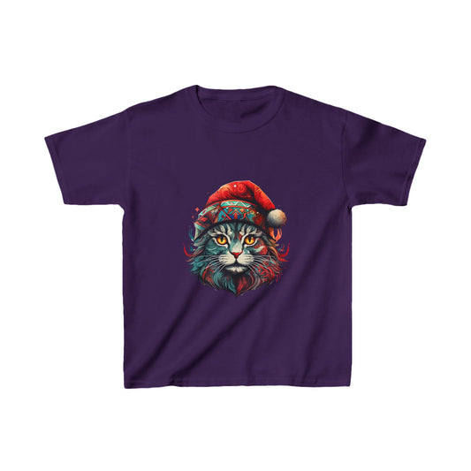 Cat with Santa Hat, Kids Cat Graphic Tee - Adorable Santa Cat Design for Young Cat Lovers