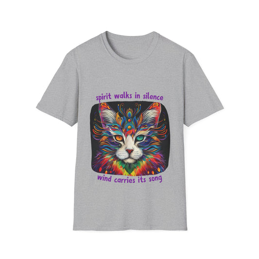 Spirit Walks in Silence, Wind Carries its Song - Shaman Graphic Cat Tee, Cat Lover's Graphic Tee Graphic Unisex T- Shirt, T-Shirt Cat Lovers Gift Softstyle T-Shirt Tee Teeshirt Stylized Cat