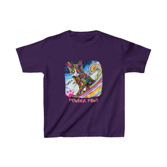 Kids - Powder Paws Skiing Cat Graphic Tee - Vibrant Ski Cat Design for Young Adventurers