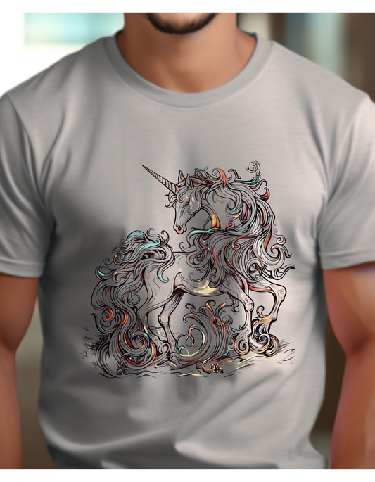 Sketch Style Unicorn Lovers Graphic Tee Unisex Heavy Cotton Tee T-Shirt