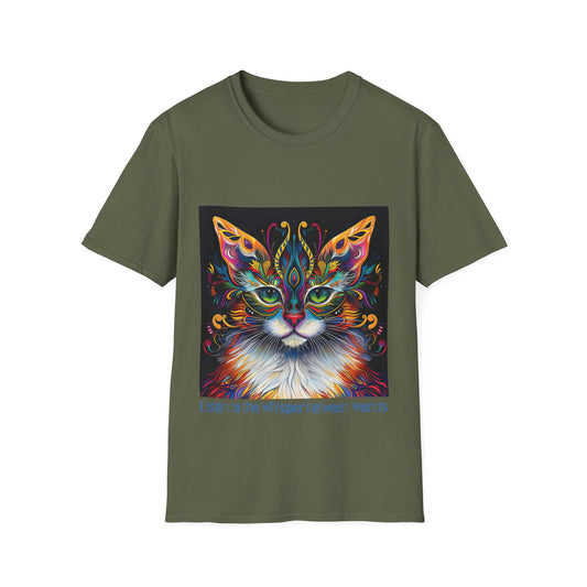 Listen to the Whisper Between Worlds- Shaman Graphic Cat Tee, Cat Lover's Graphic Tee Graphic Unisex T- Shirt, T-Shirt Cat Lovers Gift Softstyle T-Shirt Tee Teeshirt Stylized Cat