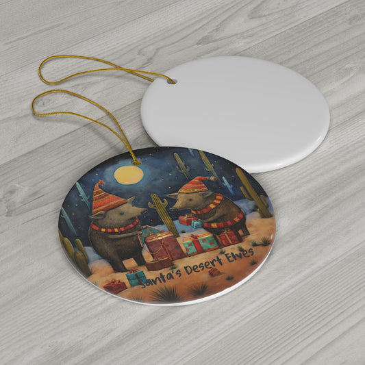 Desert Elves Javelina Desert Art Ornament, Sedona, Arizona, Christmas Gift, Christmas Cactus Gift Ceramic Ornament