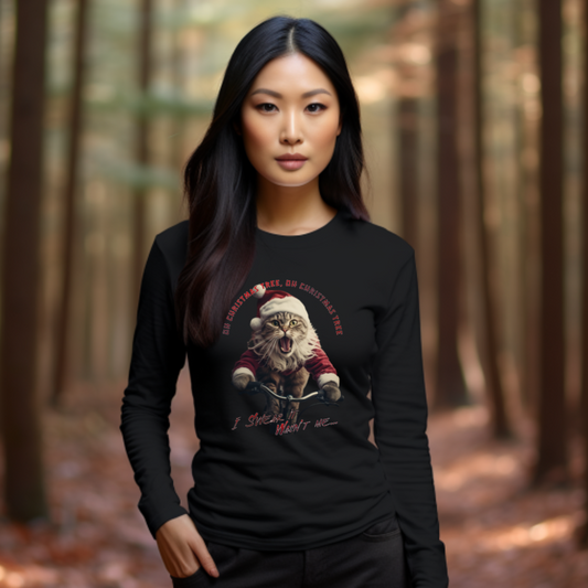 "Oh Christmas Tree Oh Christmas Tree" Christmas Cat, Cats on Bikes, Christmas Caroling Cats - Unisex Long Sleeve Jersey Cotton Shirt Mens Women's Cat Gift Oh Christmas Tree