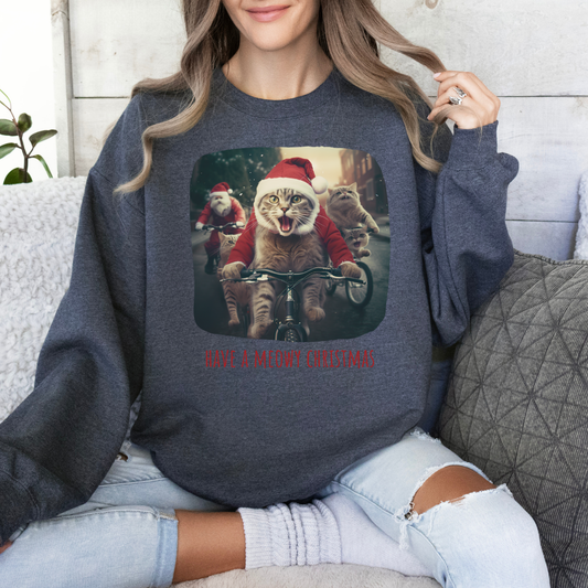 Meowy Christmas Cat, Cat Lovers Gift, Kitty Cat Christmas Shirt Unisex Sweatshirt Sweat Shirt, Many Colors