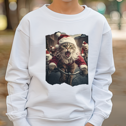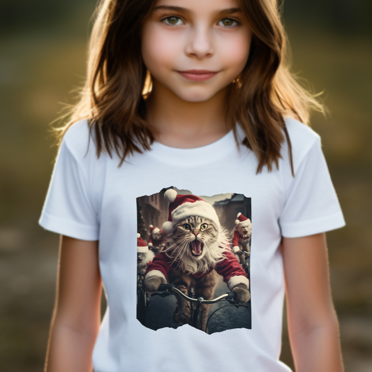 Screaming Cats on Bikes, Kids Cat Graphic Tee - Vibrant Santa Cat Design for Young Adventurers