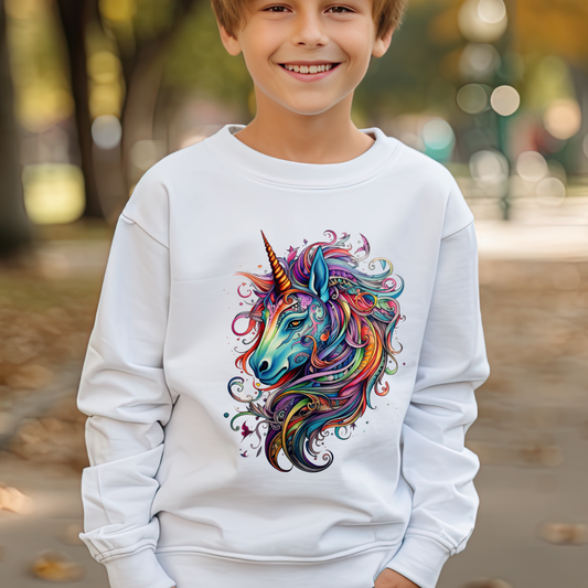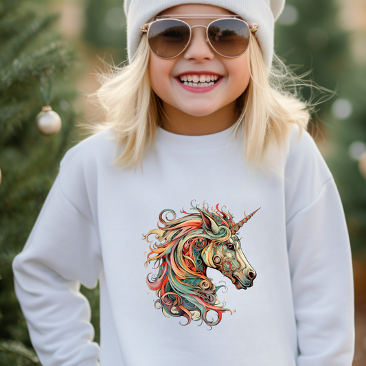 Whimsical Christmas Colors Unicorn Kids Unicorn Lovers, Kids, Girls, Boys Youth Crewneck Sweatshirt Magic White Unicorn