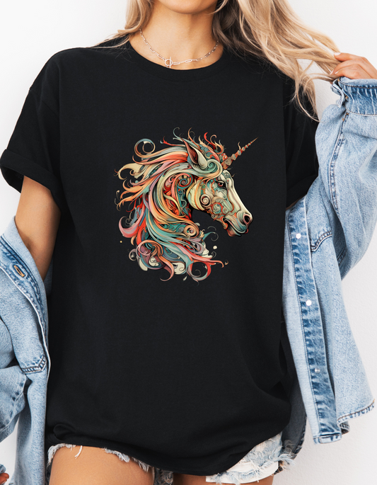 Dark Carousel Unicorn Head - Unicorn Lovers Graphic Tee Unisex Heavy Cotton Tee T-Shirt