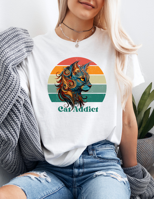 Retro Cat Addict Shirt, Cat Dad or Mom Gift, Cat Lover's Shirt, Text Reads "Cat Addict" Unisex Softstyle T-Shirt Tee Teeshirt - 60's 70s Style shirt