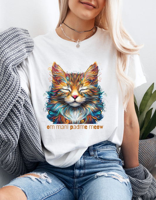 Om Mani Padme Meow - Meditating Cat Shirt, Cat Lover's Graphic Tee Graphic Unisex T- Shirt, T-Shirt Cat Lovers Gift Softstyle T-Shirt Tee Teeshirt Stylized Cat