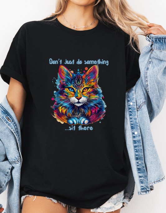 Don't Just Do Something... Sit There! Fluffy Cat, Royalty Cat, Cat Graphic Tee, Gift Unisex Heavy Cotton Tee T-Shirt
