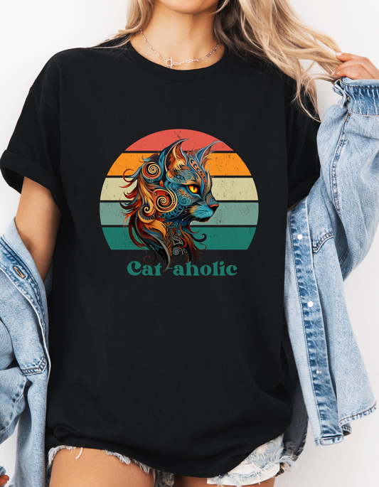 Retro Cat-aholoic Cat Shirt, Cat Lover's Graphic T-shirt, Boho retro Gift Unisex Tee Shirt, T-Shirt Cat Lovers Gift Softstyle T-Shirt Tee Teeshirt 60s 70s