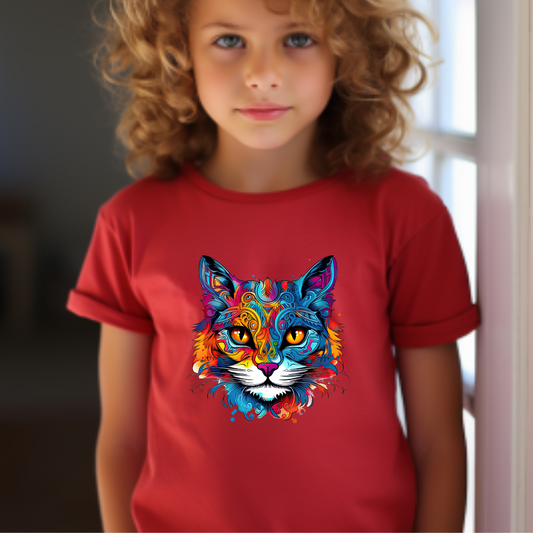 Jewel Tone Kids Cat Graphic Tee - Vibrant Cute Cat Design for Young Cat Lovers