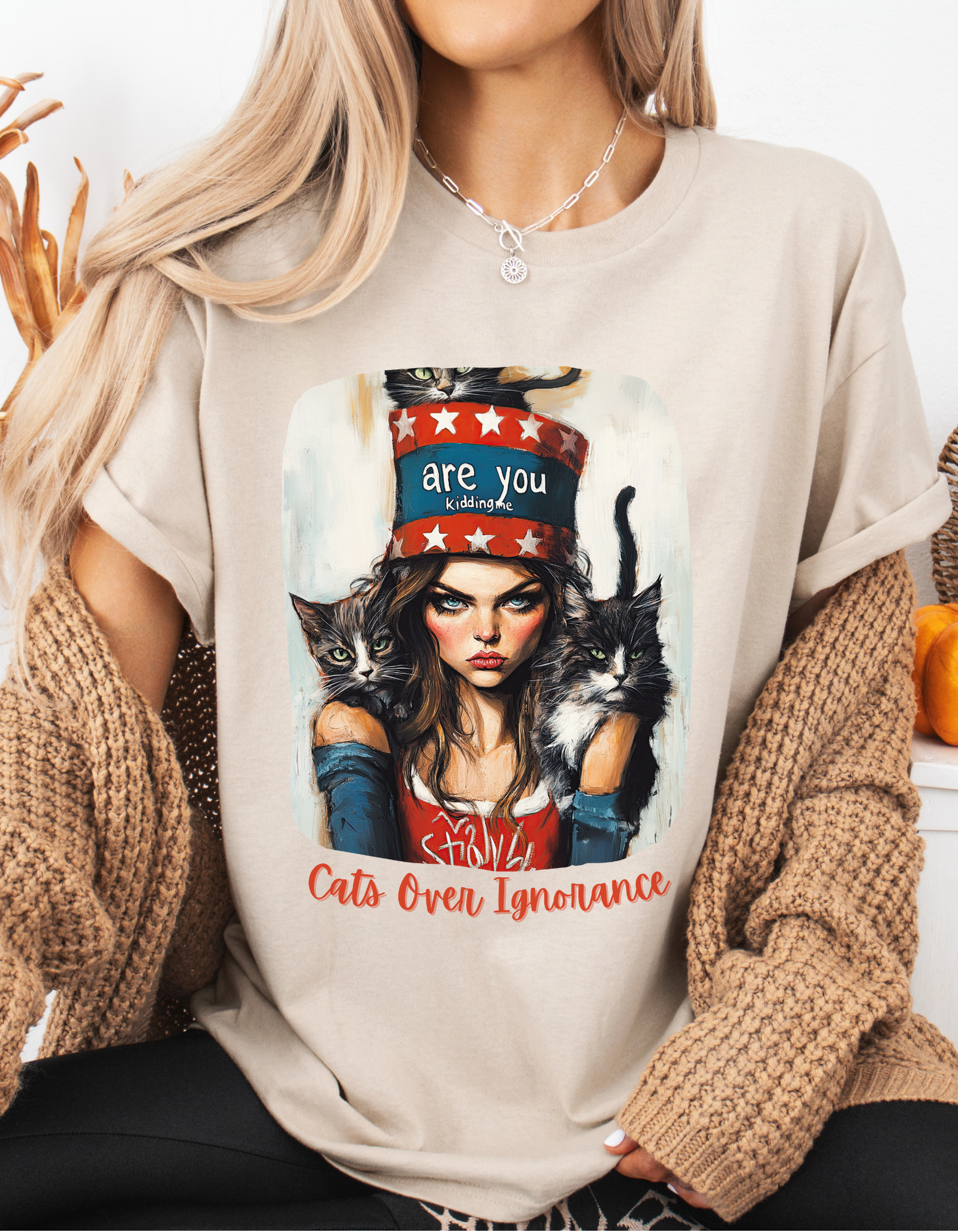 Childless Cat Lady Shirt - "Cats Over Ignorance" -(V 2) Say NO to Ignorance- Unisex Heavy Cotton Tee