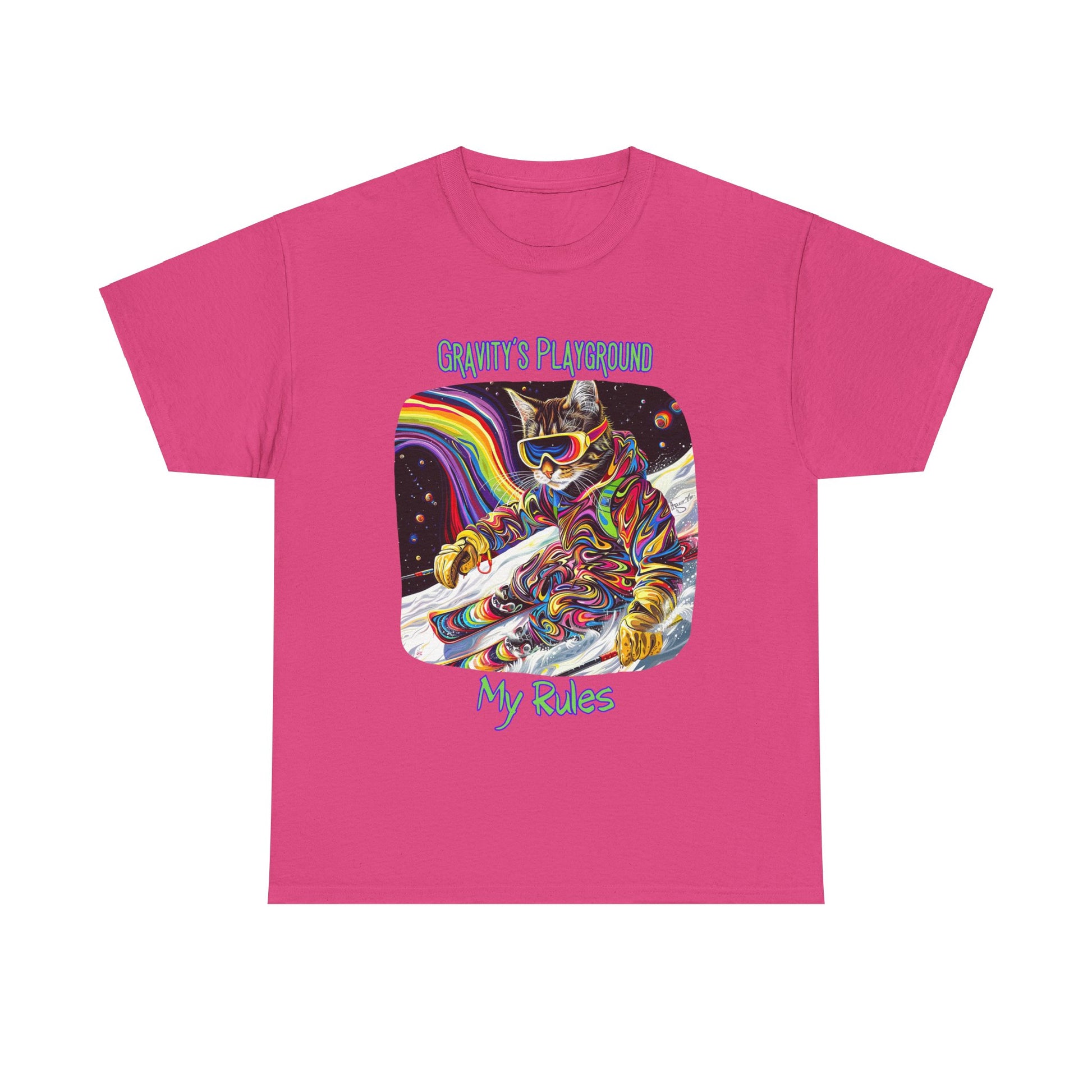 Gravity's Playground, My Rules - Ski, Snow, Snowboard Winter Sports Cat - Cat Graphic Tee Art Gift - Cool Cats Unisex Heavy Cotton Tee T-Shirt
